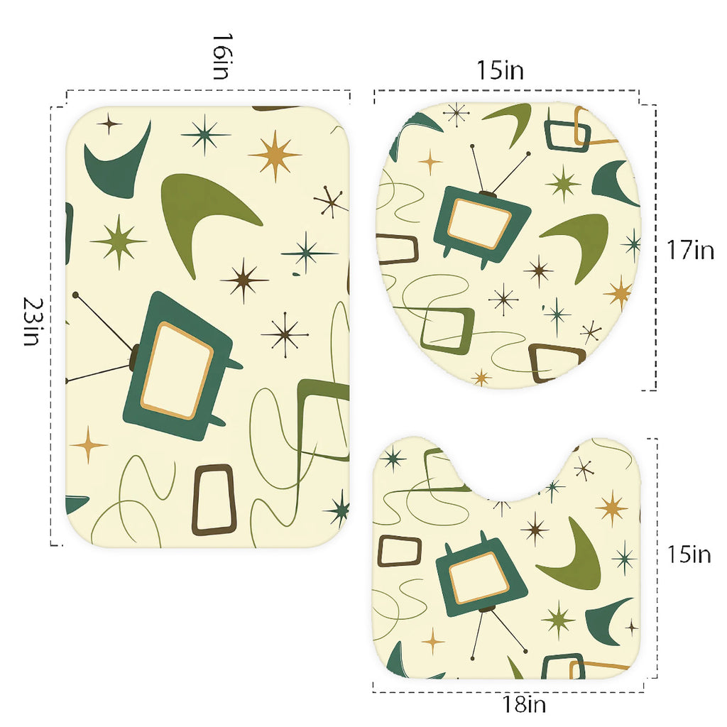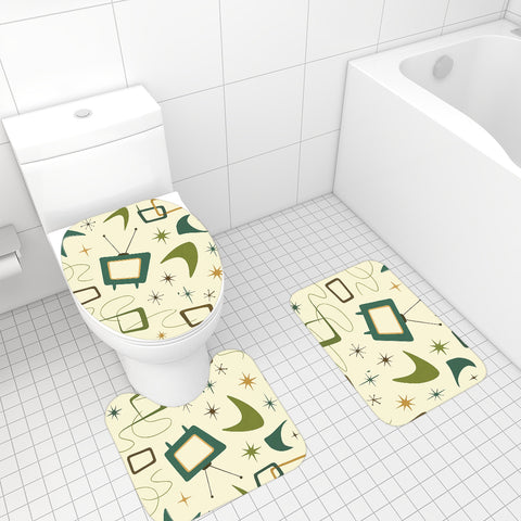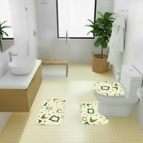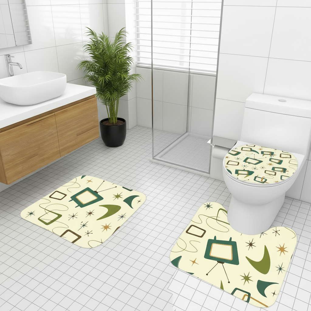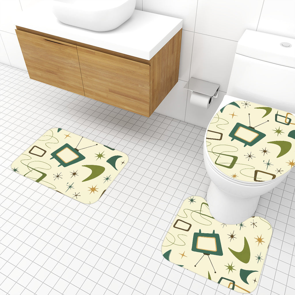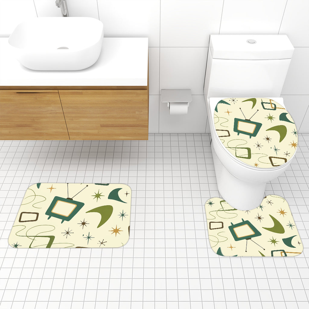 60s Retro Atomic Bathroom Rugs Set | Midcentury Modern Bathroom Decor
