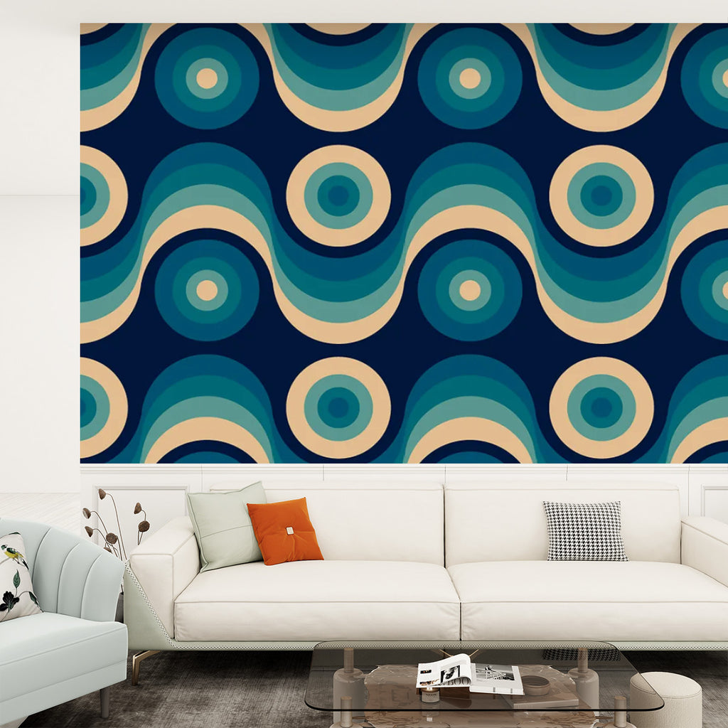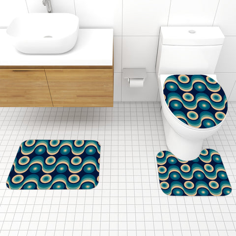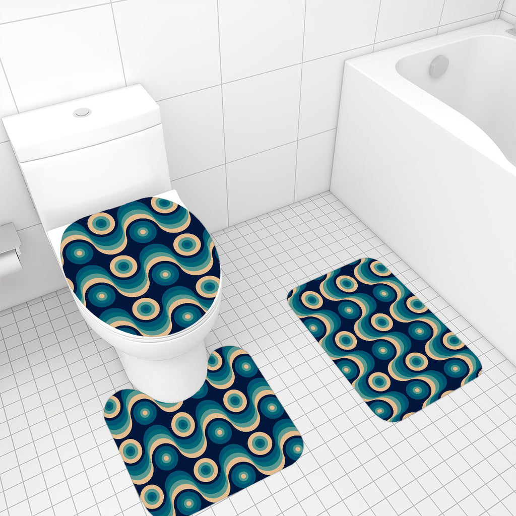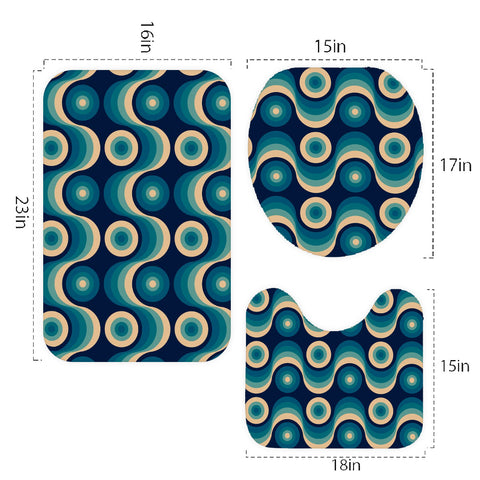 Blue Beige Vintage 70s Bath Mat Set 3pcs | Retro Midcentury Bathroom