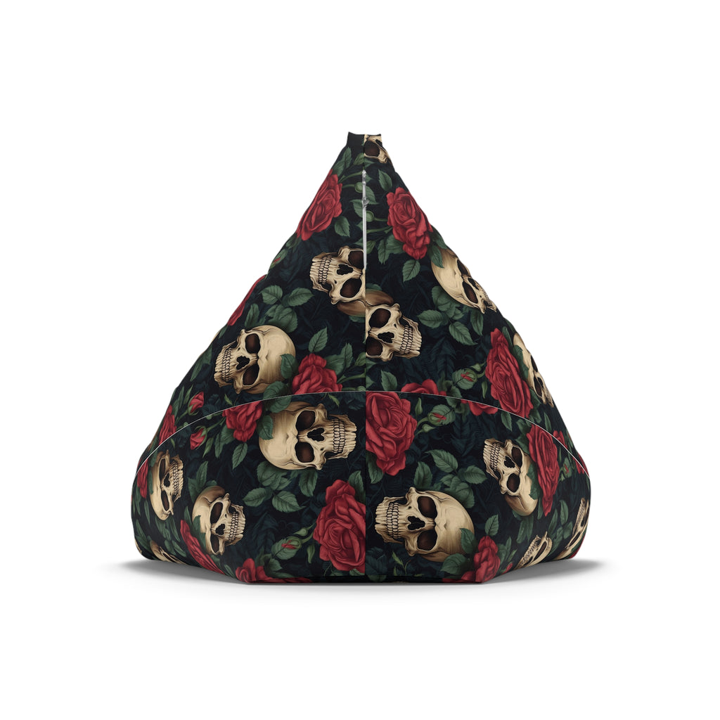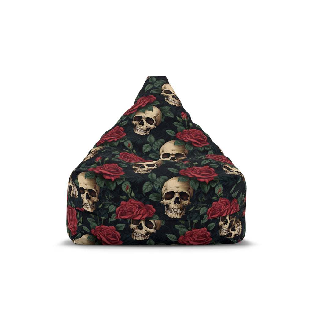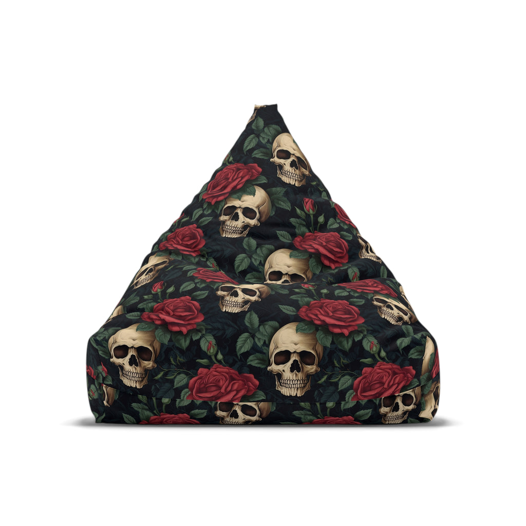 Black Red Green Gothic Bean Bag Chair Cover - Skulls and Roses Decor for Game Rooms, Lounge, Living Room - 2 sizes