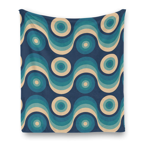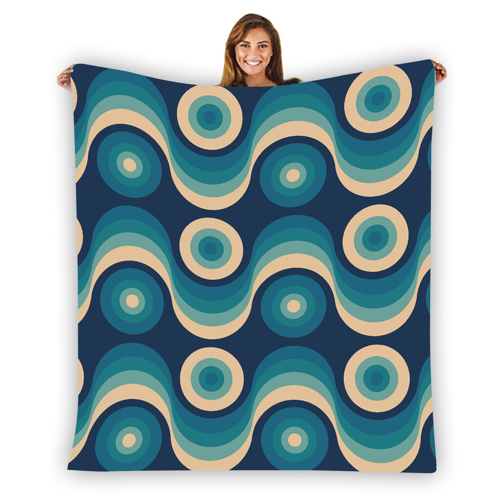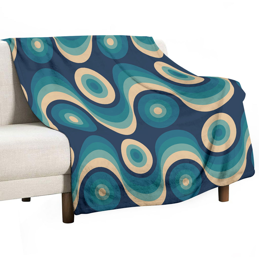 Blue Vintage Style Flannel Blanket – 70s Midcentury Modern Accent