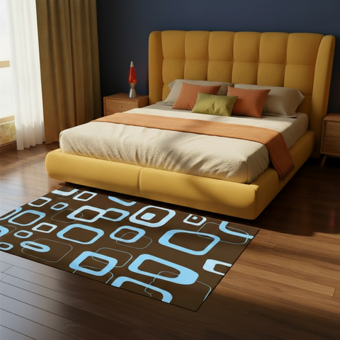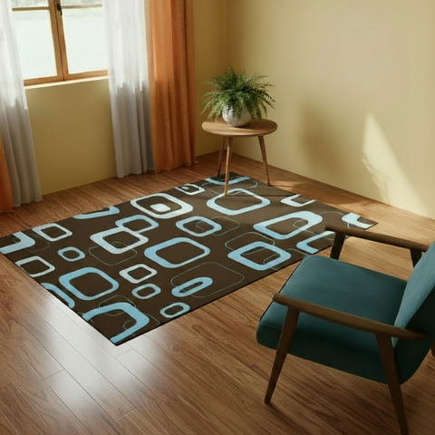 60s Retro Brown Blue Felt Floor Mat – Soft Non-Slip Midcentury Area Rug