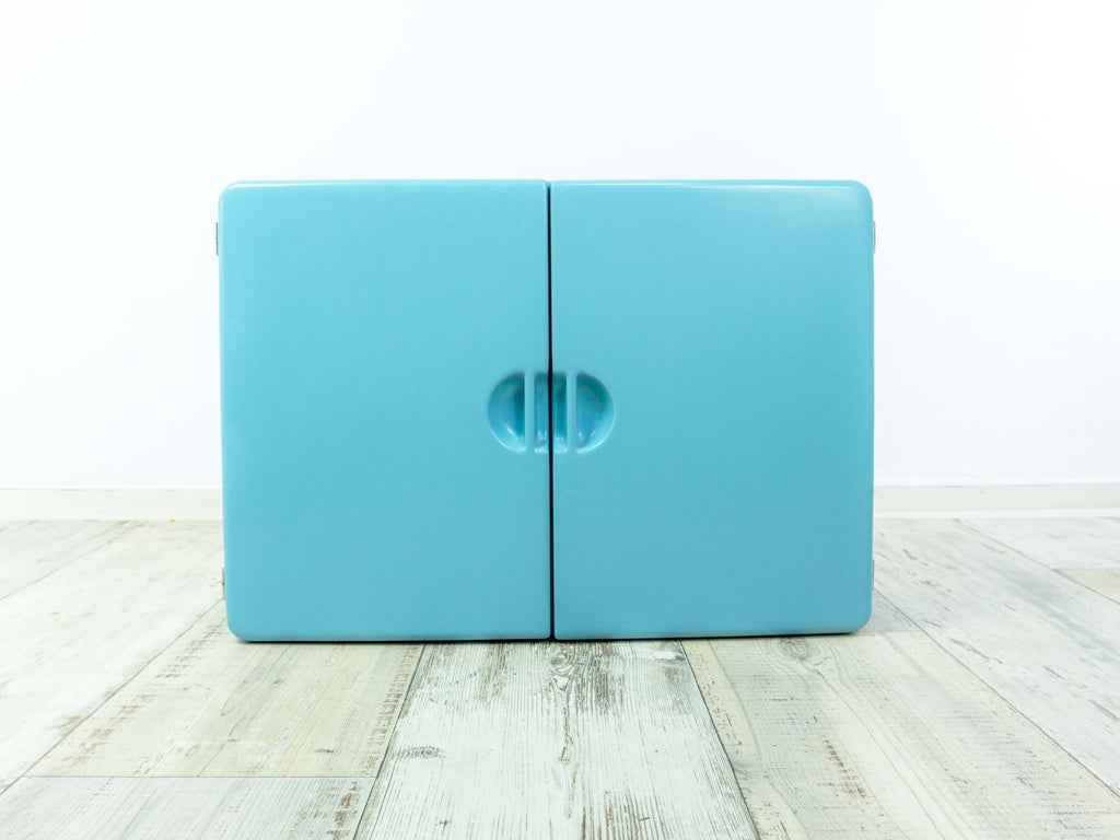 Original 1960s ITALIAN midcentury design! Lovely bathroom wall cabinet or medicine cabinet made in Italy by CM Torino. Solid baby-blue plastic body with two doors, several compartments inside. The pleasing size and the unobtrusive typical design make this piece a classic must have for every vintage home design collection and a perfect addition to nowadays living space. Lovely gift to every vintage design fancier!