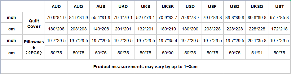 inch Quilt Cover 70.9*81.9 81.9*81.9 55.1*81.9 79.1*79.1 52.0*79.1 70.9*82.7 70.9*78.7 79.9*89.8 89.8*89.8 89.8*89.8 67.7*85.8