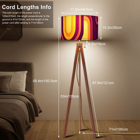 70s Retro Tripod Floor Lamp: Orange Burgundy Linen Shade, Smart LED