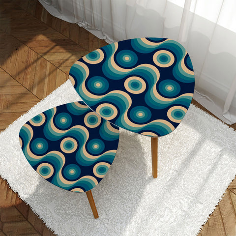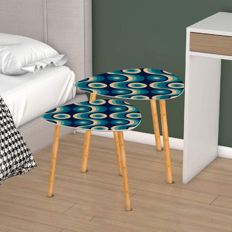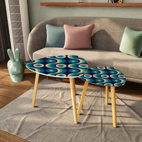 Blue 70s Retro Nesting Coffee Table Set: Midcentury Tripod Side Tables