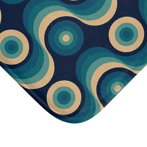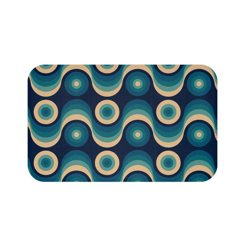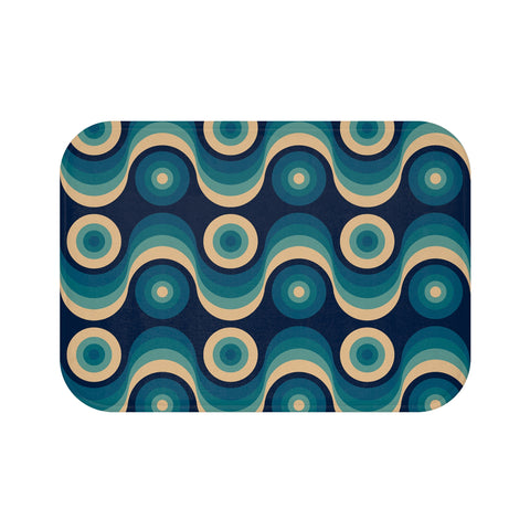 Blue Beige 60s Wave Pattern Bath Mat | Mid Century Home Decor
