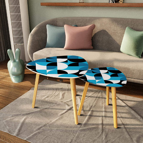 Blue Black White Bauhaus Style Retro Tripod Nesting Coffee Table Set