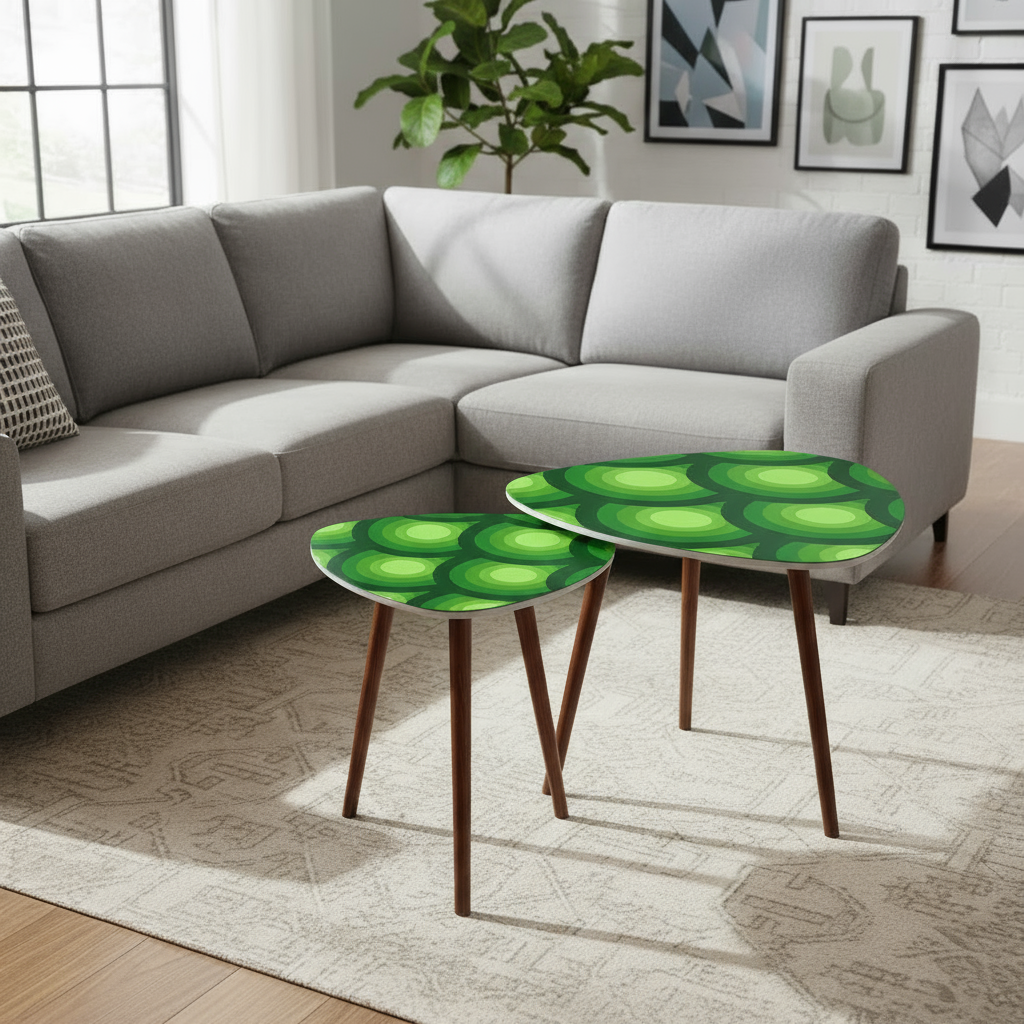 Green Peacock Eyes Retro Tripod Nesting Table Set - Midcentury tables