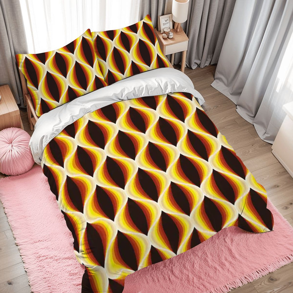 Honeycomb Pattern Microfiber Comforter Set: 70s Retro Queen Size Bedding