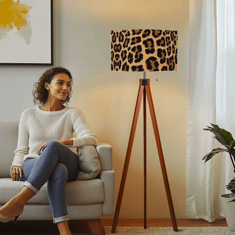 Leopard Print Retro Nordic Tripod Floor Lamp: Linen Shade, Smart LED Remote