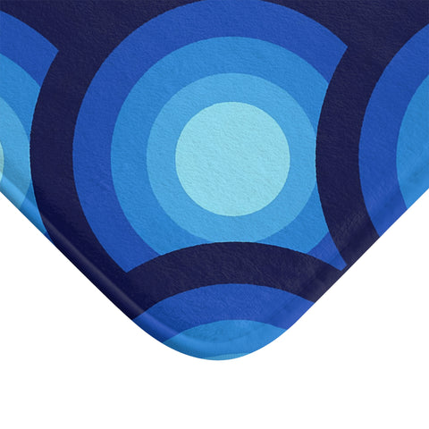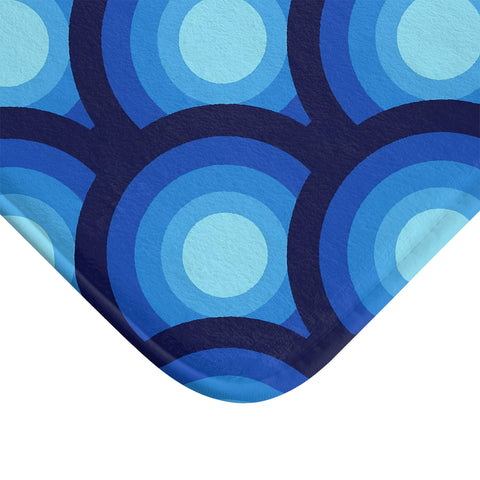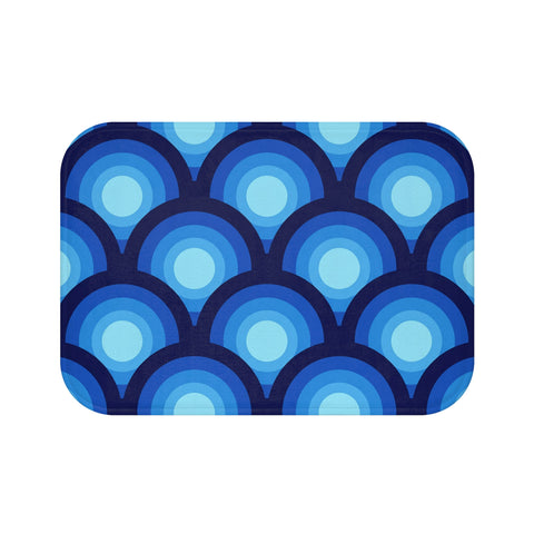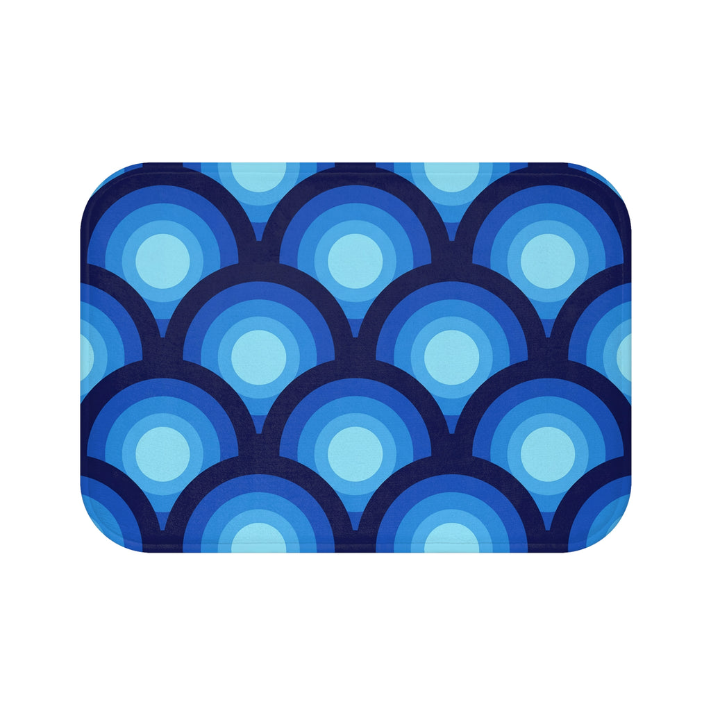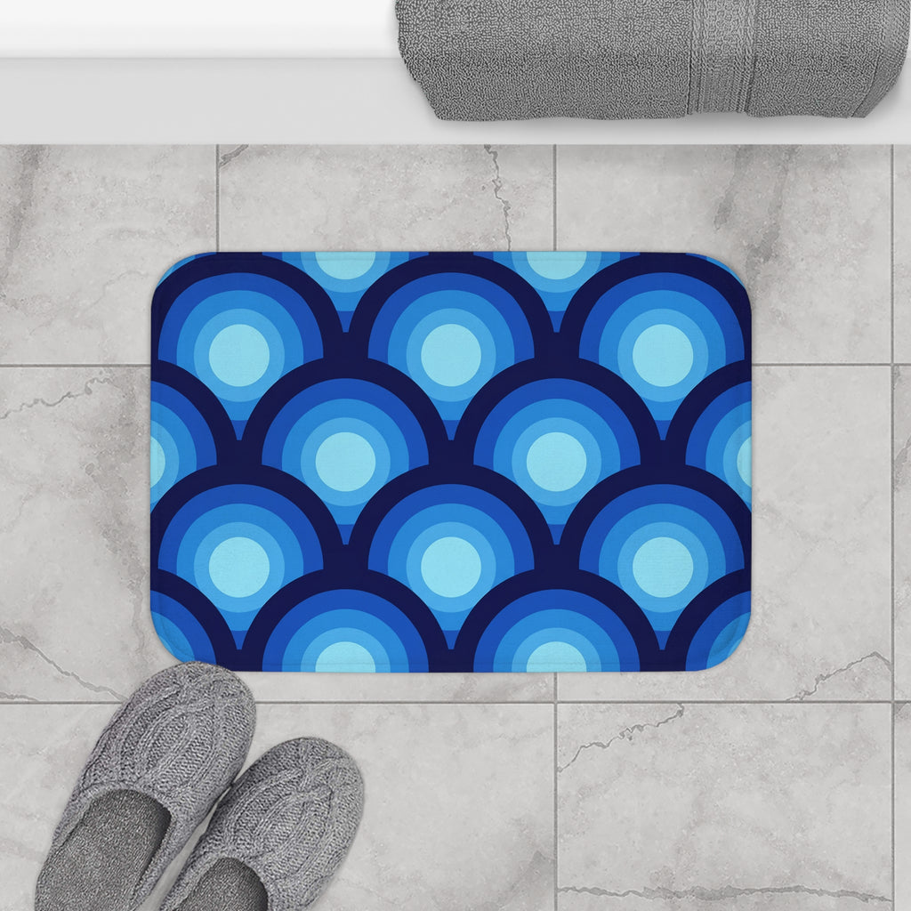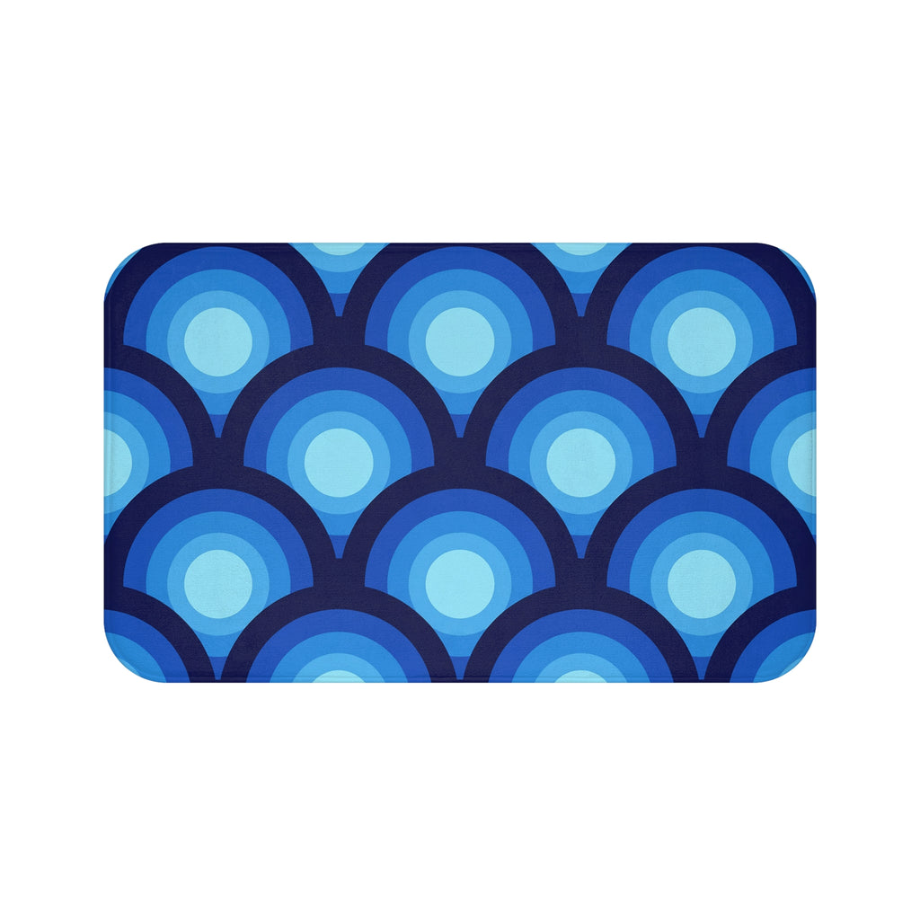 Mid Century Blue Peacock Design Bathroom Mat, Retro 70s Decor
