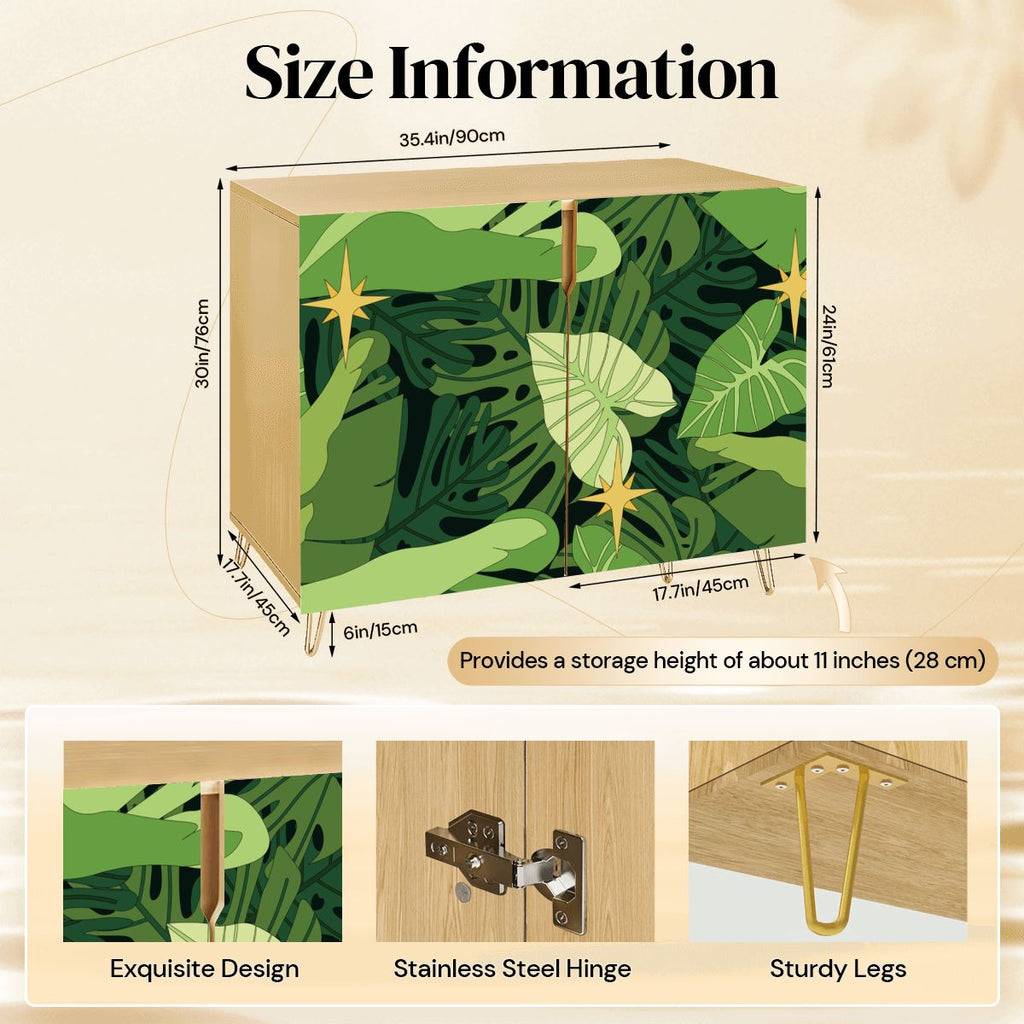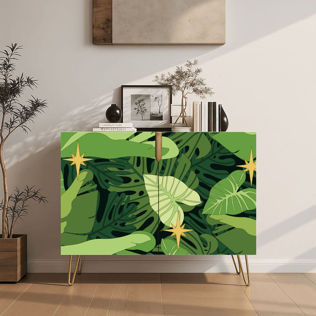 Mid Century Monstera Leaf Pattern Cabinet – Retro Storage with Hairpin Legs