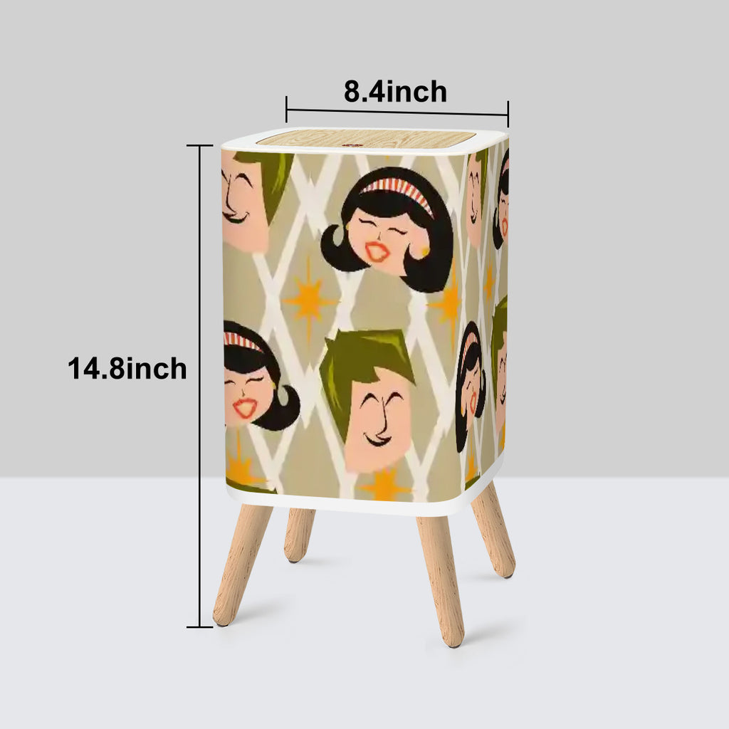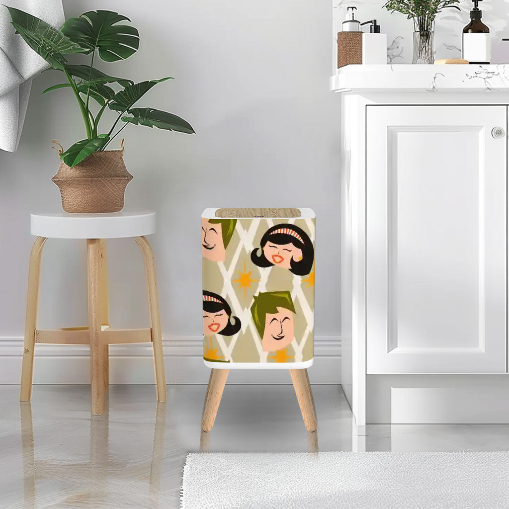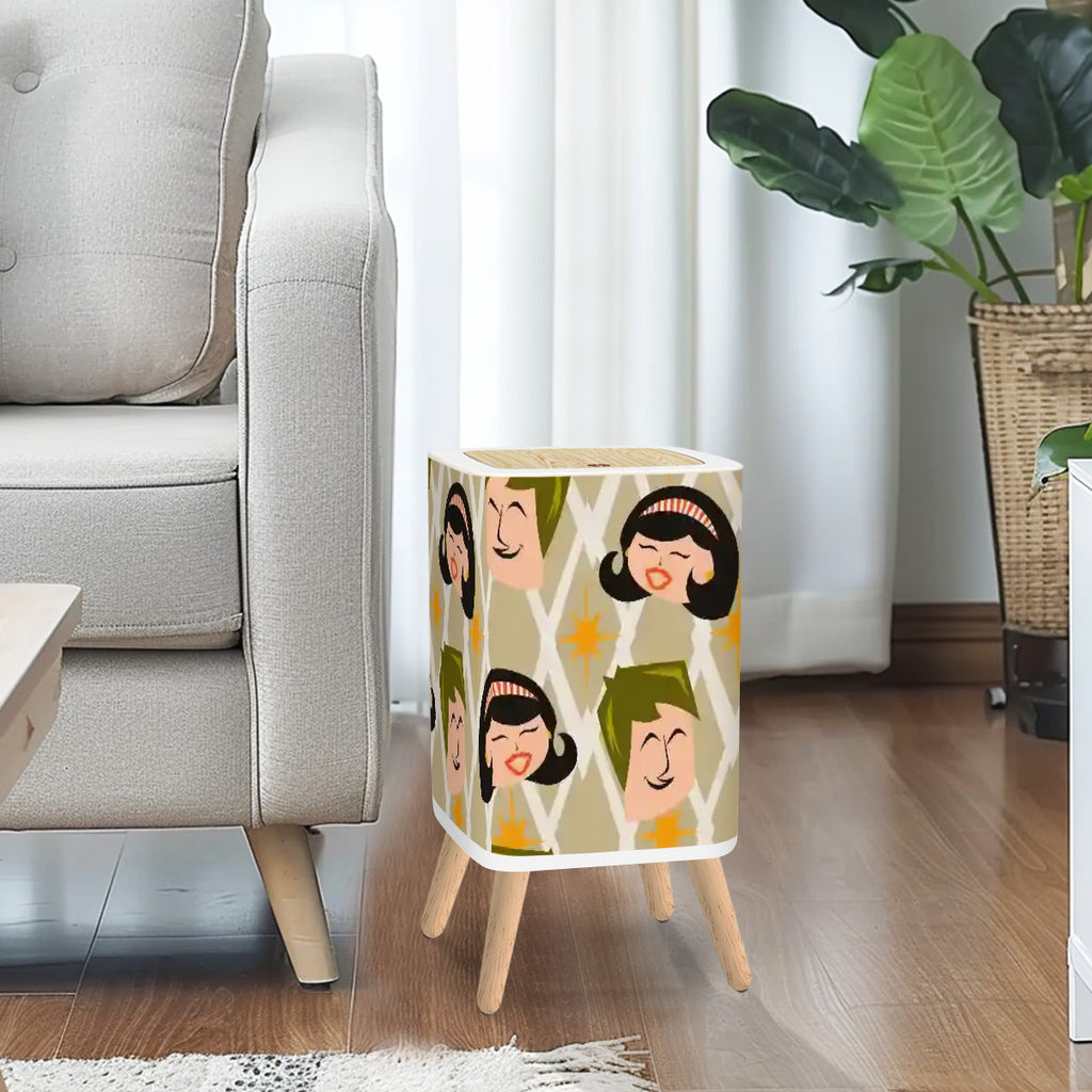 Nordic Style Square Small Trash Can with Lid Mid Century Pattern Faces