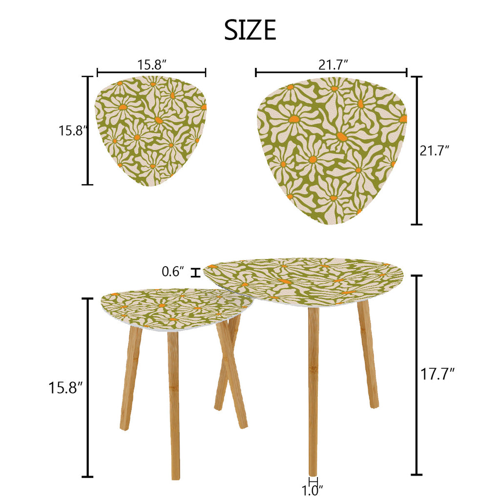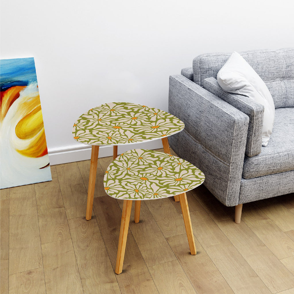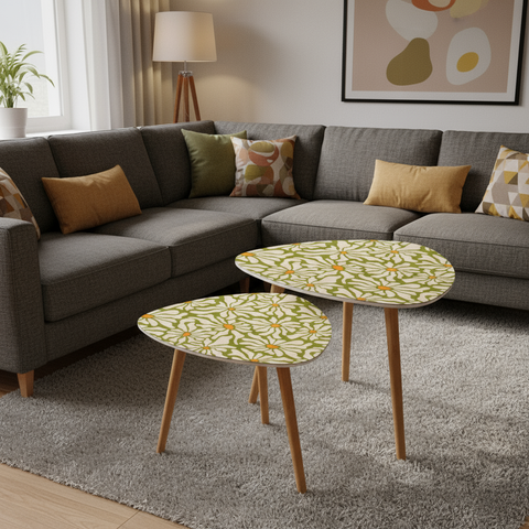 Retro 70s Daisy Nesting Coffee Table Set: Mid-Century Modern Side Tables