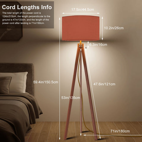 • Bring light and style into your home with this tripod floor lamp. Its retro Scandinavian design combines a fabric lampshade with a sturdy wooden tripod base, creating a warm, unique and timeless accent for any interior.