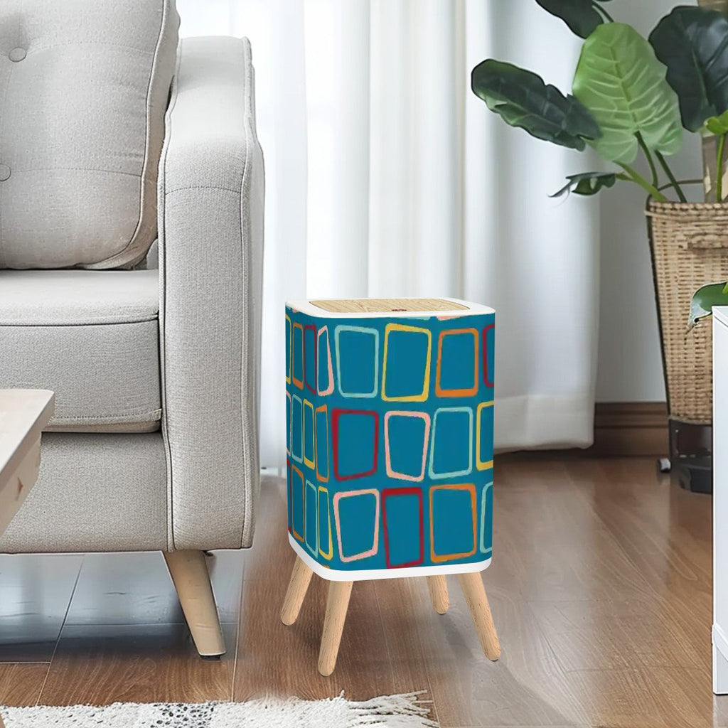 Retro Nordic Square Small Trash Can with Lid, 60s Squares Blue