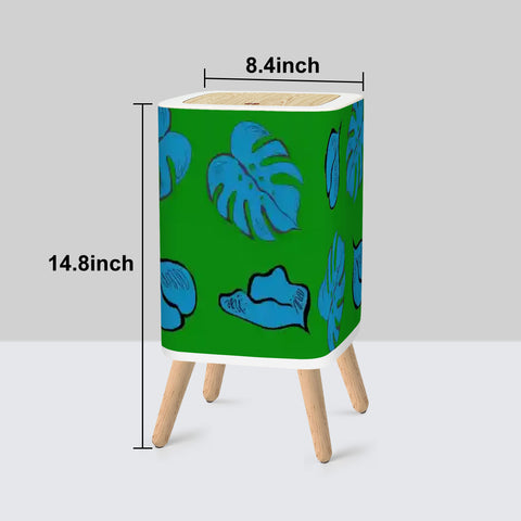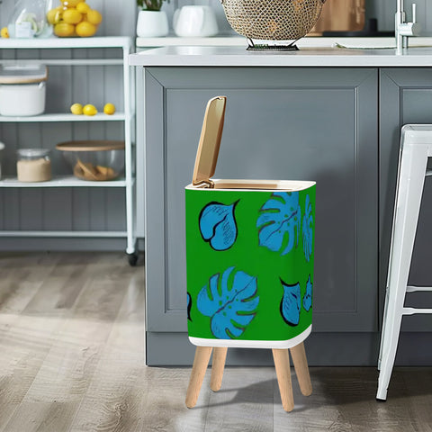 Retro Square Small Trash Can with Lid, Blue Monstera on Grass Green