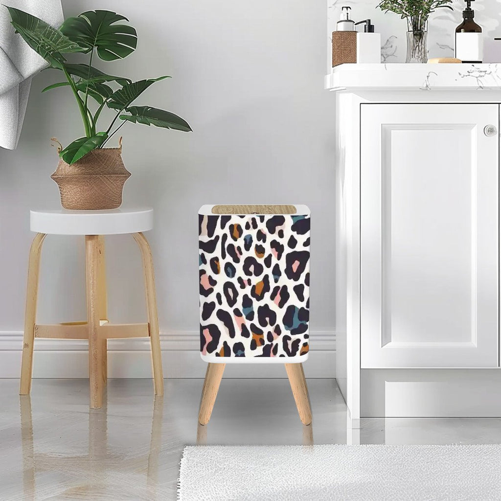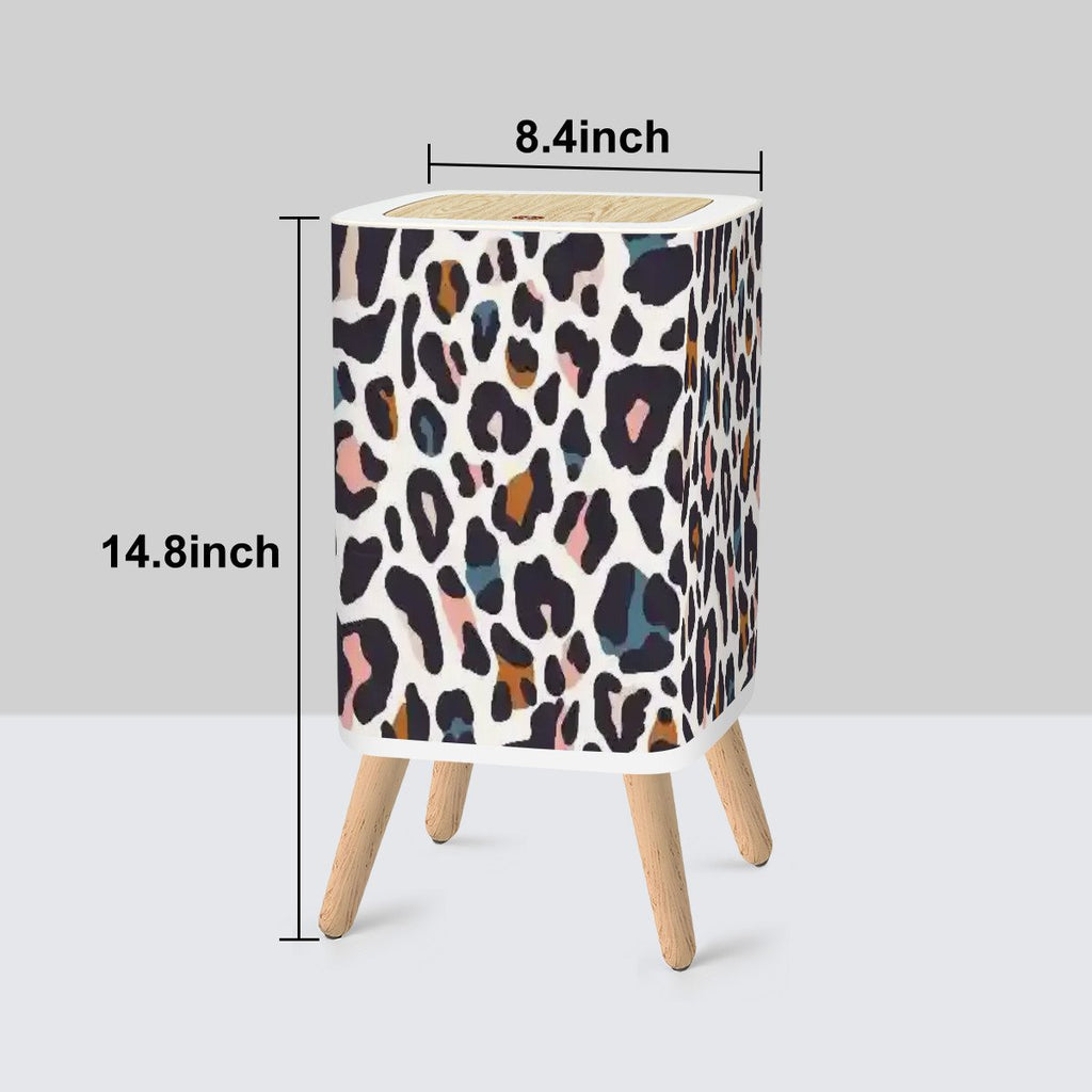 Retro Square Small Trash Can with Lid, Colorful Leopard Pattern