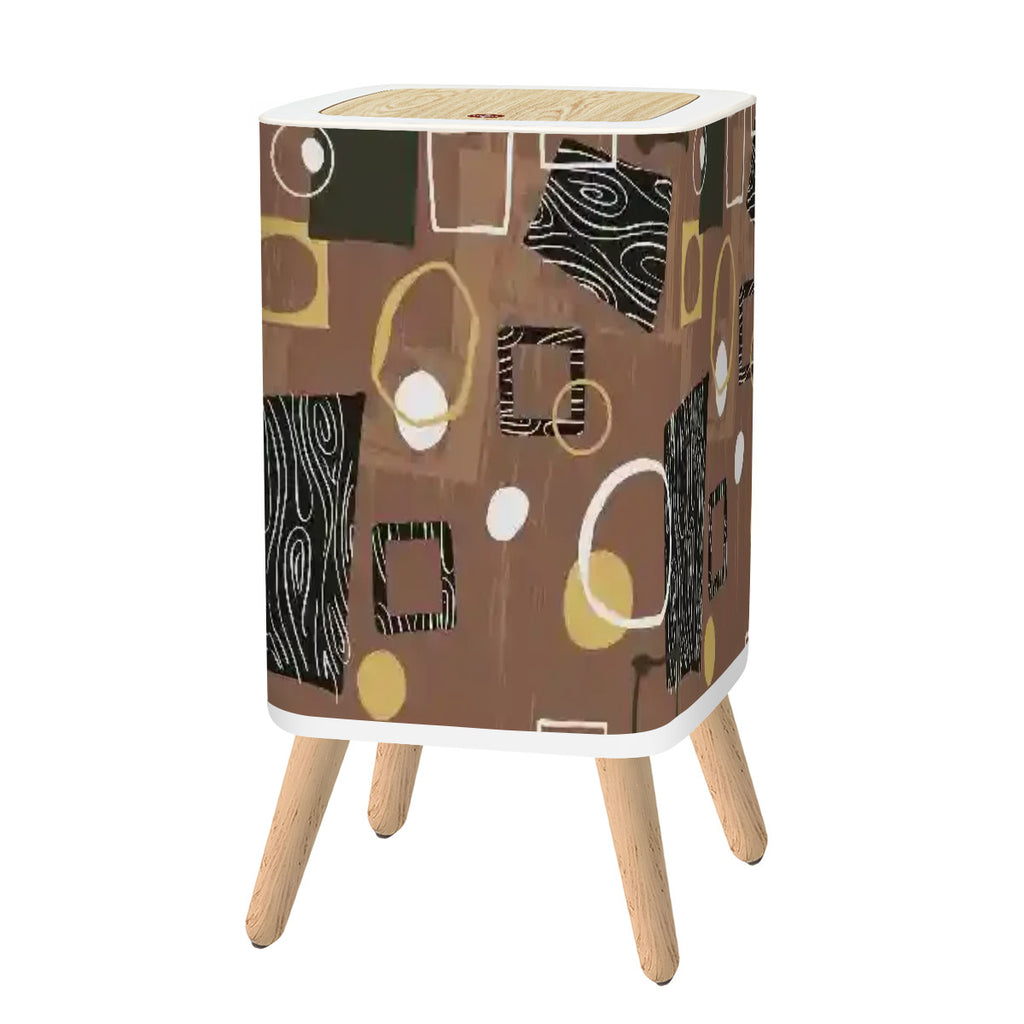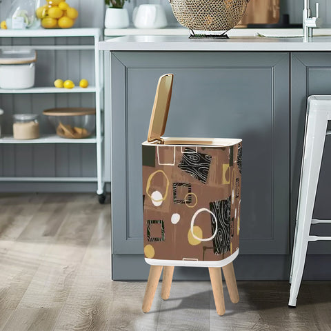 Retro Square Small Trash Can with Lid, Mid Century 50s Brown Beige Black