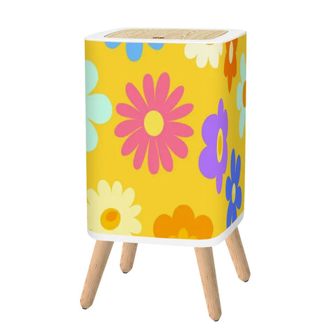 Scandi Retro Square Small Trash Can with Lid, 1970s Flowers Yellow
