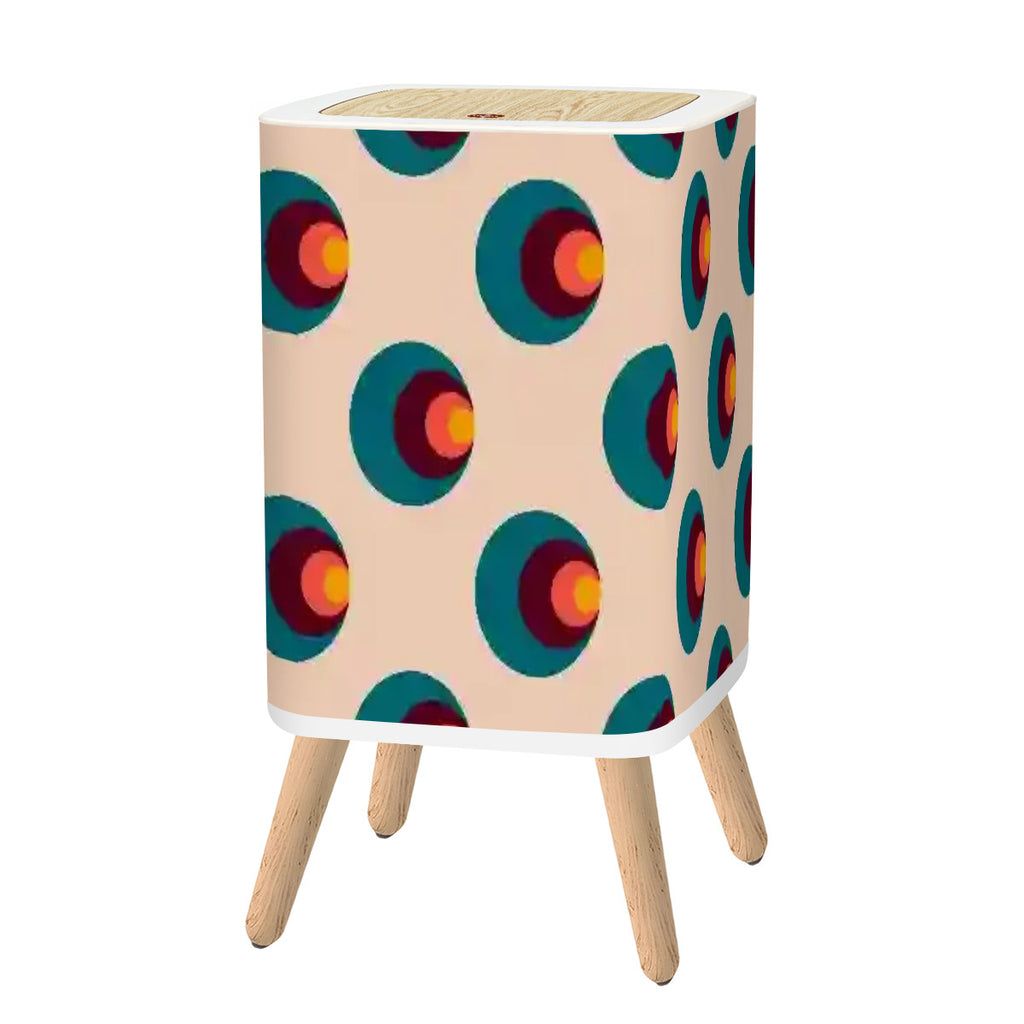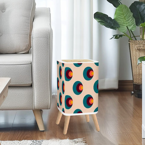 Scandi Square Small Trash Can with Lid, Retro 1970s Mid Century Pattern Beige