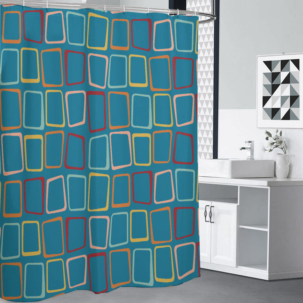 Blue 60s Retro Shower Curtain – Midcentury Modern Bathroom Accent