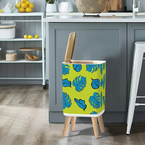 Scandi Retro Square Small Trash Can with Lid, Chartreuse Green